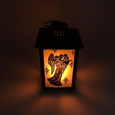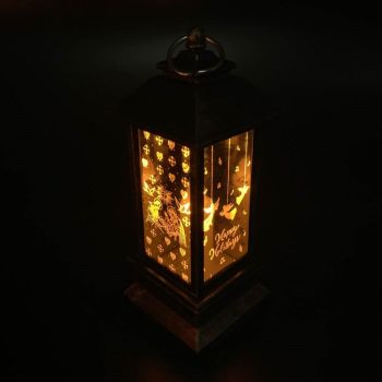 Božićna lanterna/fenjer na baterije, realističan izgled s božićnim uzorkom 21x11cm
