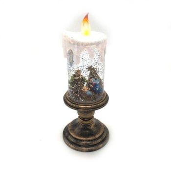 Božićna dekoracija svjetleća jaslice u obliku svijeće punjene vodom 26x10cm